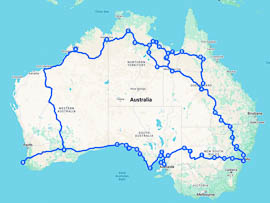 I expect the journey will cover 14,000-15,000 km, and and last something like 8 to 12 weeks. The route will be clockwise around the continent from Sydney and will try to largely avoid the coastal regions of the country. To the extent possible this will be an outback expedition.