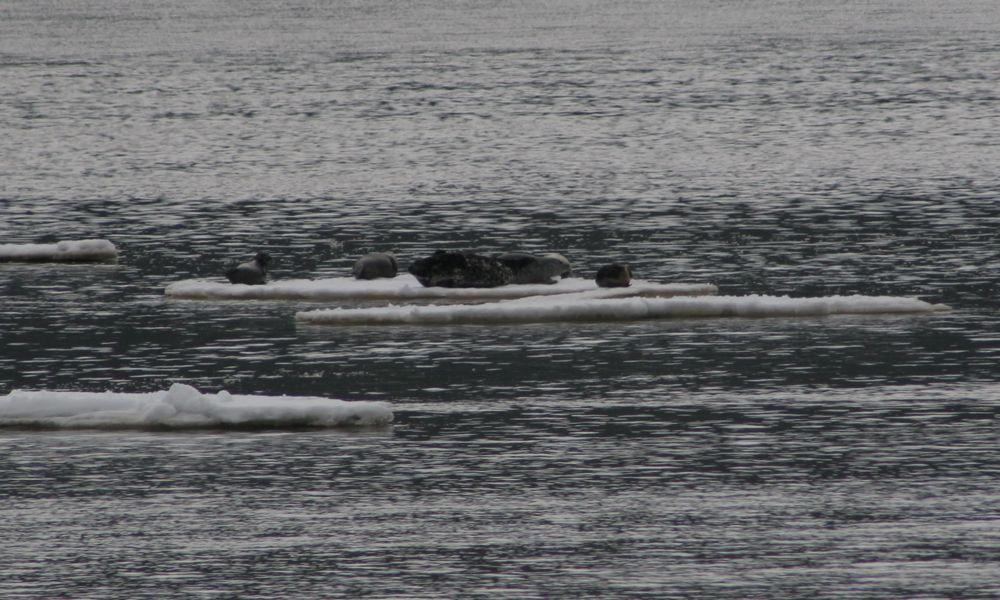 Today we retraced our route back to Terrace along the Skeena River. The weather was drizzly with low cloud. The tide was coming in so the ice was flowing up the tidal section of the Skeena river. It was a very spectacular place even with overcast weather.