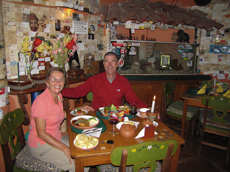 After an interesting afternoon, and a rest in the hotel, we had dinner at a restaurant called Indio Feliz , which was recommended to us by the campground hosts in Cusco. It was a good choice, wonderful food and about $40 for two, 3 course meals.