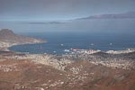 I spent the day still recovering from yesterdays food poisoning episode so did not participate in todays tour. The ship docked at Port Grande in the city of Mindelo on the island of San Vincente one of 10 volcanic islands that make up the country of Cape Verde, located in the central Atlantic Ocean. From Nina's description the town still had an African feel, with lots of dark skinned people wearing wonderful brightly coloured clothes. There was a general more prosperous feel probably coming from the lack of rubbish and better maintained buildings and roadways. A wonderful example of the effort that the island community has put into building things is the top 5 km section of the road to Mount Verde at over 2500ft. This road is made of hand laid flat stones, providing a relative flat driving surface and is in good conditions. However as a passenger trying to take photos from the bus is was extremely bumpy. We could not find out why this construction technique was used as a hot-mix road would have been a lot less work. See the photo labelled "Rocky Road".