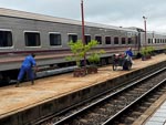 We were rousted out of bed about 6:30 this morning so the cabin attendant could reconfigure our cabin for day time seated travel; and also to prepare us for disembarcation at Nong Khai, the border town where we would complete our Thai exit and Lao entry processing. Thereafter we would take a local train on the short remaining ride into Vientiane. At least that was the plan.