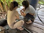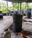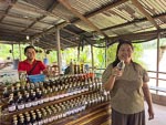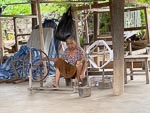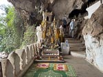 After the monks walk we went back to the hotel for breakfast and then joined one of the classic Mekong long boats for a 5 hour cruise on the Mekong upstream to a Buddha cave and Xang Hai village where we saw local Lao Lao whiskey being made from rice. At the village we of course tasted some of the whiskey and at the Buddha cave we climbed a lot of steps to examine the cave. This was a relaxing and interesting trip and for Nina and I, a little nostalgic replay of our 2 day Mekong trip last year. However the character of the river was completely different to last year. We are now in the wet season and the river is much higher, much faster and a very distinct mud color.