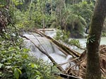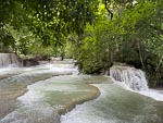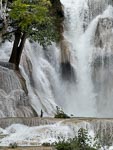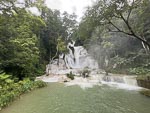 After lunch we undertook the slow drive to the Kuang Si water falls. The road was in very bad condition with lots of big pot holes. In addition to these famous water falls there is an enclosure housing a number of Laotian local black bears. The falls were also showing the impact of the wet season and recent rain and were flowing with tremendous strength. So stong infact that swimming was prohibited in most of the pools.