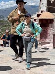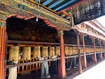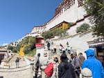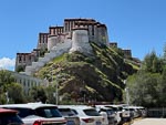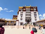 A visit to the palace requires a substantial feat of exercise as the a visitor must climb from below the bottom of the palace to the very top an altitude gain of over 300m (1000 ft) and remember this is at an alitude of 3500 meters. Most of the climb is on irregular stone steps on the outside of the building ending at an open court yard. From this courtyard the climb continues inside the building and winds through a series of rooms and steep stairways another 4 or 5 levels past various religous displays. These display rooms typically are overseen by a monk who seems to spend part of his day distracting himself on his smart phone.
