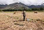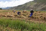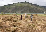 Nina and I organized our own car, driver and guide for today as the itinerary for the group was 3 more temples/monestaries. So at 9:30 our guide (Chinese with English name) Susan and driver (also Chinese lady with English name Fay-Fay) arrived at the hotel and we were off. The plan was to see a little of the local country side. On the train journey to Lhasa we had noticed that grain harvesting was under way and we wanted to get a closer look. Similarly with horses. Tibetans are as enthusiastic about horses as Mongolians so if possible we wanted to get closer to some guys and their horses.