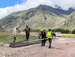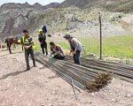 The guys and their horses was an interesting story. This group had to transport a sizeable load of reinforcing rod (as you can see) to a site up a steep hill not accessible by vehicle and had hit on the idea of using horses. The problem was at the time we saw them they had not figured out how to tie bundles of the steel so the horses could drag it or carry it. So in some of these photos they are puzzling over that issue.