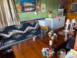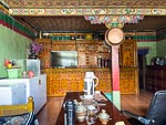 At the turnaround point of the days exploration, a village the guide called a Horses village we found an older lady who was prepared to show us her house, and of course she offered us tea, and not just any tea - butter tea. This is black tea with yak or horse milk, salt and yak or horse milk butter. Nina declined, the guide and driver did not drink theirs, but I actually like this stuff so had 2 cups. The photos dont show it but the ladies house was extensively and intricately decorated.