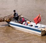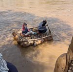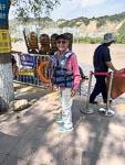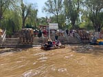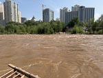 The highlight of the day was a return trip to the Yellow River where Nina decided she wanted to have a ride on one of the little rafts we saw yesterday. As you can see from the photos these are very small crafts, and they get their floatation from inflated sheep carcases. In the photos you can see the skin of the legs poking up between the cross rails. After that it was off to the station for another overnight train. This time to the far western city of Urumqi.