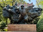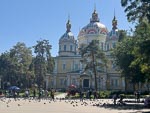 Tonight at 23:00 we boarded an over night train to the Kazakh city of Taraz so the days activities were intended to entertain us until that happened. First up was a visit to some of the cities iconic tourist attractions, starting with the Ascention Cathedral. This is a magnificent all wood building that during soviet times was used for a variety of public purposes, being returned to the Russian Orthodix Church in 1995. Its current good condition is a result of extensive renovations during the period 2017 to 2020. Near the Cathedral is Panfilov Park and The Statue of Panfilov's Heroes. The somewhat intimidating statue celebrates the 28 Almaty soldiers under a General named Panfilov who resisted attack by German tanks during the battle of Moscow.