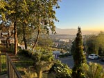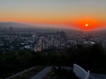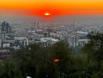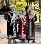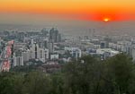 Late in the day after a rest and opportunity to pack we all checked out of our hotel and headed for Kok Tobe Hill a mountain to the East of the city of Almaty which we were promised would give a good view of the sunset. Little did we know that at the top of this hill we would find all types of 1950s style carnival rides, be able to dress up in traditional Kazakh clothes and hold a hunting eagle, or indeed have a meal at the mountain top restaraunt. But we did see the sunset, and also the monumental traffic jam that is the standard Almaty afternoon rush hour.