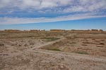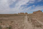 Our primary activiy today was outside about 50km north of Turkistan where we visited the ruins of an acient city called Sauran, pronounced Saw-ran. I know that all the Lord of the Rings fans are thinking about Tolkien's villan but the correct pronunciation is slightly different. The city ruins are in a poor state of repair despite obvious restoration efforts. This is partly a result of the use of mud and straw as a major building material, and partly from vibration from the neatby railway tracks. The city apparently flourished between the 13th and 18th centuries as a major trading town on the Old Silk Road and finally was abandoned due to lack of water when other communities upstream on the river Syr Dara diverted too much water.