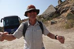 After lunch we headed back towards Baku but instead of the upmarket sky-scraper downtown we found ourselves wondering through what could only be described as the underbelly of Baku where the poorer residents live and work, and where the roads are not freeways but beatenup, sometimes paved small streets. Why were we in such an area? We where headed towards Yanar Dagh - Fire Hill a place where historically there have been three natural eternal fires fed by natural gas. These flames or fires date back centuries with claims that they were reported by Marco Polo. The three fires are the natural wonder from which Baku derives its emblem of 3 flames after which the 3 towers mentioned in yesterdays post get their name. Now unfortunately there are no longer three of these flames as nature has conspired to extinguish 2 of them.