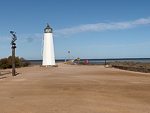 When I woke this morning the weather was calm but cool, however the streaky clouds in the sky gave a warning of the windy day to come. By the time I had packed and ridden the 20km south to my old home town of Wallaroo the promised wind had arrived and with it dust. Why dust, well much of this part of South Australia is grain farming and for at least some farmers it is ploughing time. So high winds and ploughing makes for dust. And so it continued for much of the day. Indeed the weather was so unpleasant that I did not spend long in Wallaroo just long enough to get a photo of our old family home and another of the two land marks that I remeber from childhood.