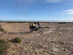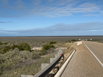 West from Yalata the land form changes. East of the point the road travels on the tops of a low escapment which is the reason that the Australian Bight has scenic cliffs. From Yalata a low land emerges between the escapment and the sea and the road drops down to follow the sea. Thats Pict005.