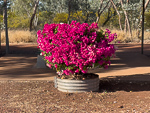 The first order of business today was to stop at a camping shop in Mt Isa and get myself a new functional sleeping mat. On the 100km drive into Mt Isa I stopped at a rest area that had a very nice red/pink flowering plant next to one of the picnic shelters. This rest area was a memorial to the completion of the Barkly Highway joining Camooweal and Mt Isa.