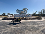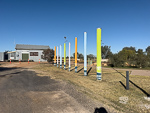 Before hitting the road this morning I walked the few meters to Dirrenbandi's town park and photographed the metal relief-statue of a charge by Australia horse soldiers in WWI, and some coloured poles (which I think have some aboriginal significance). After that I had coffee at the town bakery which is run by a Russian family.