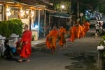 ...click/tap to read the full postThere are a number of Budhist Temples in Luan Prabang (something like 15 -- look it up), which means there are a lot of monks, and traditionally the way they sustain themselves is with gifts of food from the local population. In Luang Prabang that process takes the form of a daily procession of monks walking along the streets of the town past lay deciples who are seated on the side of the road with various feed stuffs ranging from a pot of boiled rice to candy bars. The process is called "Alms Giving". The processing is early in the morning, around 5:30, and there for was not condusive to good photograhs.
