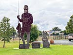 ...click/tap to read the full postWhen we woke this morning it was raining heavily so we were certainly glad to be housed in our nice cabin. Eventually the rain eased and we started the day of travel. First stop was a little tour around Nyngan, a look at the Coach House a display of wagons and other stuff from the pioneer days. At the same place is a very large statue of The Bogan a guy with a fishing pole. We guessed this name comes from the Bogan River on which the town is situated.