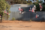 ...click/tap to read the full postThe cockatoos were out and about while we were fueling up in Hawker this morning and Nina managed to capture a flock of them in flight. There after, as you can see from the rest of the photos, we spent the day sightseeing by following a series of rough unpaved scenic roads or tracks through gorges or steep sided creek valleys. Morolana Road, Brachina Gorge and Bunyeroo Gorge. We found these gorges quite fascinating. In this incedibly dry country where most of the vegetation is low scrub, the creeks are an avenue of very large River Gum trees.These trees survive in this place by driving their roots down hundreds of feet to find the creeks water that is often still flowing underground.