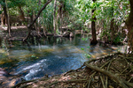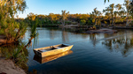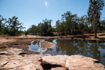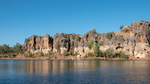 ...click/tap to read the full postWe made a start before sunrise this morning and walked from the campground to Manning Gorge. The start of the walk is quite interesting as one has to cross a large waterhole, and a small aluminium boat with rope tow is provided for the purpose. By the time we returned from the walk the kids staying in the campground were up and playing in the waterhole and a couple of them offered to be our ferrymen. The walk to the Gorge was hot and a bit tedious but the gorge provided some nice photos of cliffs reflected in the clear water.