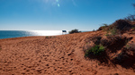 ...click/tap to read the full postThis morning we finished our exploration of Francois Peron NP by driving the remainder of the sandy track to Cape Peron where we spent some time trying to get the "perfect" photo contrasting the red soil against the white beaches and blue ocean. It was a lovely morning and in addition to the great scenery, the great luck of spotting a goanna sunning itself under a bush we enjoyed the bouncing bucking ride along the sandy tracks.