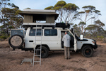 Before hitting the road today we drove a rough track from Eucla Roadhouse to the nearby coast to get a look at the remains of one of the early Eucla telegraph stations which is now partly devoured by the shifting dunes. Thereafter as we traveled east we visited a number of lookouts perched on the edge of the Bunda Cliffs (the sea cliffs that mark the eastern end of the Greast Australian Bight). At one of these lookouts we happened upon the same group of cyclists we passed yesterday and spent sometime chatting with them while they fueled up on some (high energy ?) food.