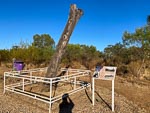 ...click/tap to read the full postBefore leaving Daly Waters this morning Nina did her usual walk around and visited the Stuart Tree, the nearby WWII air field, railway bridge and we said goodbye to the campground cattle.