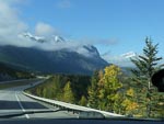 ...click/tap to read the full postIt rained a bit overnight and was overcast this morning and the road was wet and hence muddy as we continued north of 940. Late morning we connected with Highway 40 (also called the Kananaskis Trail), a spectacular drive surrounded by mountains that eventually connected with Highway 1 just east of the town of Canmore. Highway 40 provided a herd of mountain sheep for our entertainment and the first snow falls of the trip.