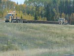 ...click/tap to read the full postWe started today with a nice long walk in the forest (and rain) near the campground and found a good example of a beaver felled tree. Once underway we made our way into the little village of Boyle for a fuel top-up before starting the stretch of road to Fort McMurray. Not far out of Boyle highway 63 turned from a rural road into a new 4 lane freeway/motorway/expressway (whatever you want to call it) clearly built to handle the demands of the energy industry, indeed we passed a number of oversized loads during the curse of the day as well as seeing many heavy transporters returning south. I was a bit captivated by the trailers and their many wheels, at one point we caught a photo of a returning combination with two prime-movers (at pulling and one pushing), 26 axles on the trailer and 8 wheels on each axle.