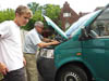 ...click/tap to read the full postBrendon and I have spent the past week working on his VW van. We eventually parked the van at the Kopernicker-Hof so that we could leave it in pieces overnight. The days have been filled with numerous trips to a nearby Hornbach hardware store, lots of grinding, drilling and sawing, but we finally got the second battery, charger and various wires installed under the driver seat. That project now seems complete. It is worth noting that as the week progressed a heat wave descended on Berlin and most of our work on the VW has been done in the blazing sun with temperatures in the high 90's ° F.