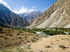 ...click/tap to read the full postAfter leaving Hanis guest house and Vali its friendly and helpful manager we set out down the Panj River valley towards Khorog. The scenery today was a bit like a combination of the previous two days driving. The Panj River valley narrowed and steepened and instead of a wide valley floor and a meandering river we had a narrow gorge (sometimes less than 100 meters wide), a raging river and steep valley sides with the road often cut into those steep sides as a shelf. Interestingly though even in this much steeper country the locals had managed to find patches of soil that could be cultivated and turned into house compounds or small villages. With the river much narrower we got some closer views of people and farms on the Afghan side.