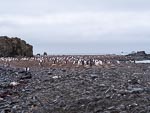 This morning we made a landing on Elephant Point, which is a small outcropping on Livingston Island, which in turn is part of the South Shetland group of Islands. The point was once a camping and hunting location back in the days of the seal oil trade. Today there is only some remains of an old sealers hut. There is almost no snow on this piece of land so that animals are more prevelant. In the photos below you will see a number of groups of male Elephant Seals which from time to time get involved in pushing matches to test their strength, an interesting demonstration of the way these guys fight. There are also some large colonies of Gentoo penguins many of them nursing young.