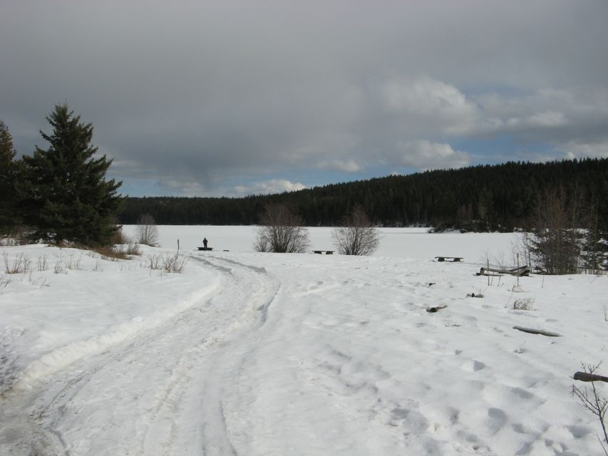At Lac La Hache we turned right onto Timothy Lake Road looking for a provincial park and the camping ground at Greeney Lake. About 11 kms from the highway we came to the camp ground and luck was on our side the entrance had been plowed. The remainder of the camp ground was under snow ranging from 2 - 4 feet deep.