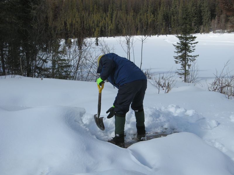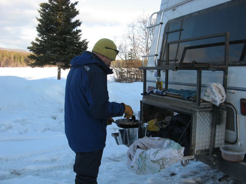 About 3:30pm we started looking for the place we thought we would camp, Co-op Lake. We missed the turn so Nina got out the GPS and guided us back to the correct turn off. A few kms down this forest road and we came to the camp ground entrance. This was another one of those situations where only the entry road had been plowed.