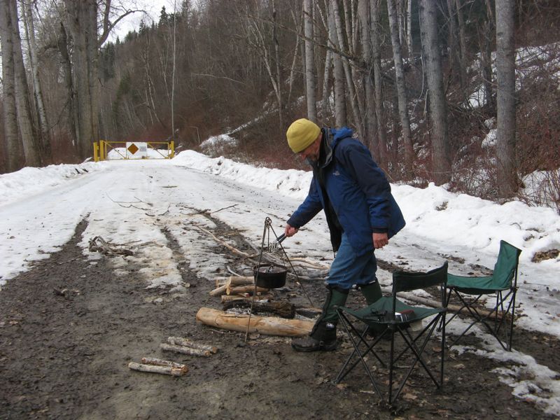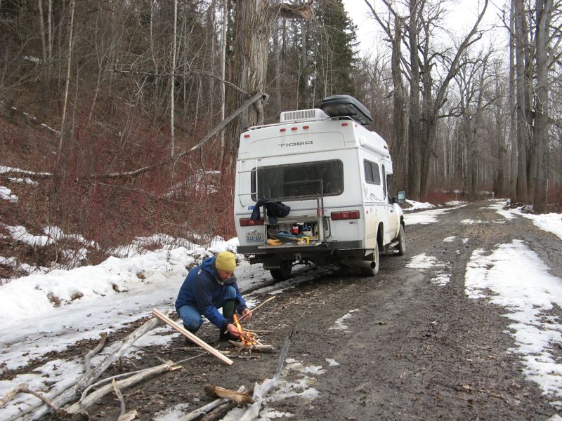 Late in the afternoon a local farmer dropped by on his old 80cc Japanese motorcycle to collect sap from a couple of maple trees right near where we were parked. His name was Ted, he had been in this place since 1952 when his parents bought the farm he now owns. We chatted for a while about world affairs, Australians, the Queen (of England), and how to identify maple trees. After Ted departed we cooked our dinner over our nice campfire.