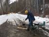 Around lunch time we stopped at the township of Smithers and to our surprise the local Safeway store had a cafe with free wifi, so we checked emails and uploaded yesterdays journal entry. At first glance the town was a typical unattractive inland BC service town but the main street was quaint and clearly set up for the tourist business, with a number of sporting goods stores and coffee shops all with free wifi. The town was also situated at the foot of the impressive Hudson Bay mountain.