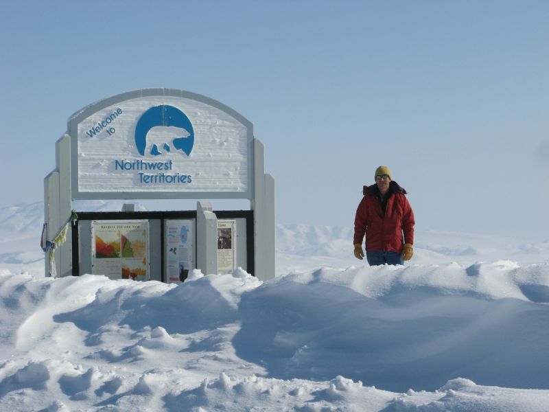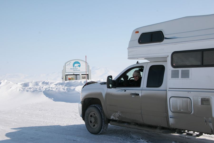 Within 10 kms of entering the Northwest territory the temperature fell to -3°F - that's the coldest temperature our Tiger motor home has ever seen - also the coldest Nina has ever seen.