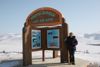 A little later the road climbed a steep hill to a saddle between two valleys and crossed the border between the Yukon and Northwest Territories. Again there was a rest area with signs to mark this transitions; it was 3°F this time when we stopped for photos.