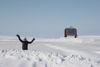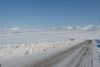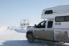 The scenery of broad tree-less valleys, a narrow frozen road with periodic snow drifts across the road continued until the crossing of the Peel river - the first of todays ice bridges. The Peel is narrow - maybe 600 yards wide, and the ice was much lower than the river bank so that road descended steeply as it became frozen river. The crossing was a bit of an anti-climax. We were onto and over and off before we really noticed.