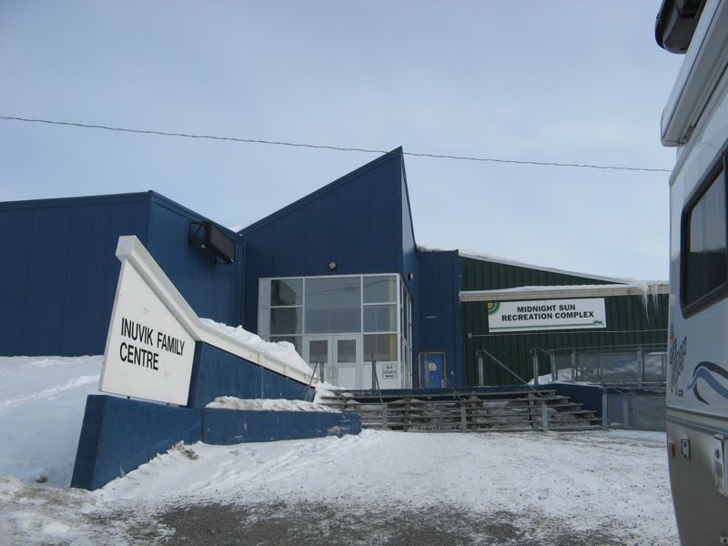 We had read about the indoor water park in Inuvik and wanted to see it before leaving, so before finally checking out of the motel we took a short walk up to the big green building that houses it.
