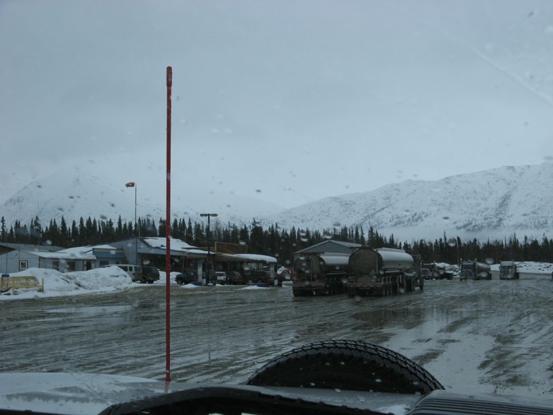 Given the activity and the obvious movement of trucks north we decided to be on our way. The remainder of the afternoon gave me ample opportunity to practice my CB skills with regular transmissions of camper north bound from XXXX where XXXX was whatever the most recent land mark happened to be or, in the absence of a land mark that I knew the name of, a mile post number. By now the road was even more sloppy and we travelled cautiously in and out of 4-wheel drive.