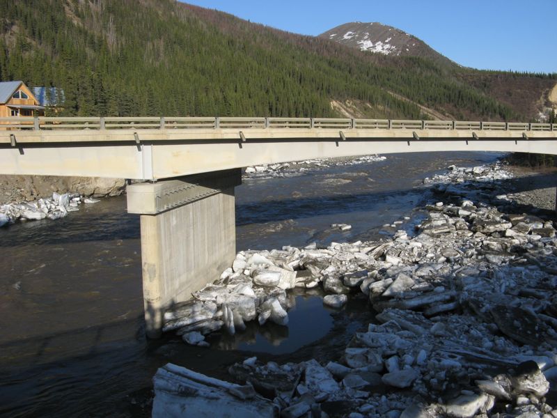 There were quite a number of other vehicles on the road including a big 45 foot long motor home. At the point where the road was closed we found a parking lot well stocked with vehicles and visitors, a viewing platform overlooking the Talkeetna River, and restrooms.