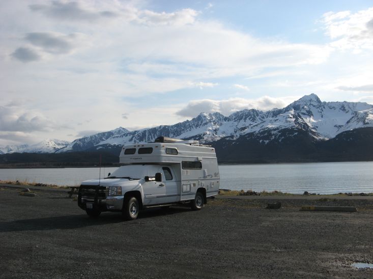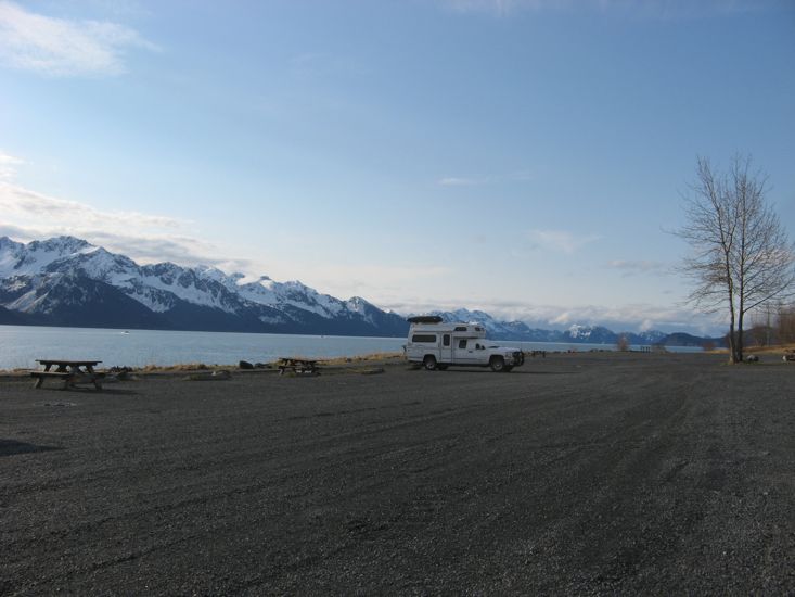 The drive back along the Seward Highway was pleasant with wonderful views of mountains and lakes, then onto the road towards Soldotna where we spent some time connected to wifi in another Safeway store. I was trying to organize to buy two new tires for the vehicle, but because it is 4x4 the tires shops won't sell me 2 of a different type of tire and none of them have the current tires in stock. Not sure what I am going to do.