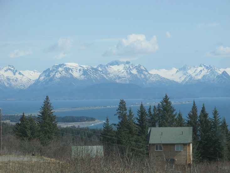 Homer is at the foot of an escarpment, and just before descending into the town there is a scenic view point which affords a wonderful view of the the spit, the inlet and the mountains on the other side of the inlet.