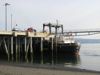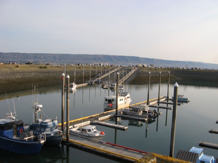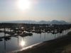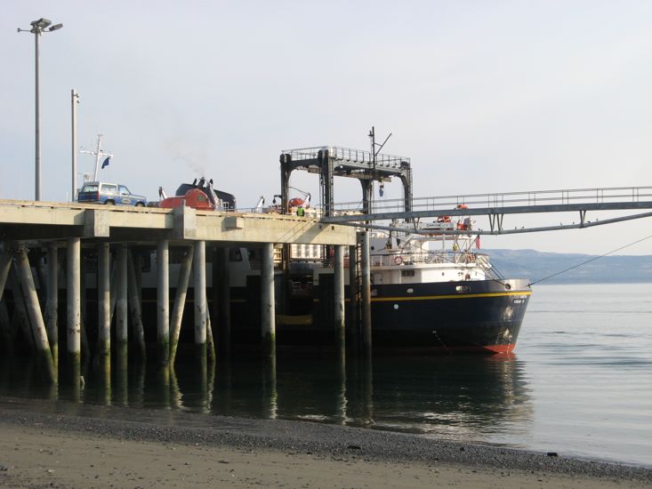 We woke early to a sunny but crisp day. After the usual breakfast routine of coffee and muesli we walked to the end of the spit. A vehicular ferry was unloading and we stayed to watch. Unlike most of the ferries in the Seattle area this one was not strictly a drive on drive off type. The ferry had a large lift or elevator structure that carried vehicles from the hold up to the level of the dock, where they drove off the lift onto the dock. It was interesting but a very slow way to load and unload. It was a beautiful morning, no wind, bald eagles all over the place and sports fishermen getting ready for the days adventure.