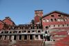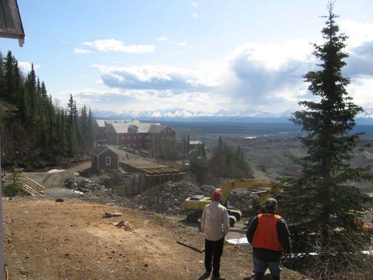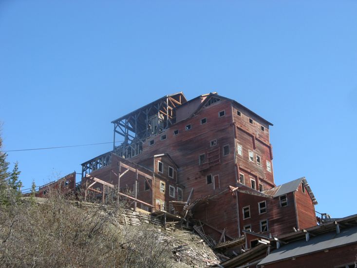 The town of Kennicott is situated atop the southern moraine wall of the Kennicott Glacier and was the site of processing plant for the Kennecott copper mine - note the spelling, the town and glacier are Kennicott the mine is Kennecott. The guide book says this is a result of a spelling error when registering the mine.