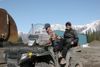 As we entered McCarthy we came upon a group with 3 ATV's at a small church building. We greeted them with could we convince one of you to become a taxi service for a little while?. In a flash we had our very own ATV and driver, turned out to be a 9 year old boy named Jubal. We spent the next 2 hours with Jubal and his machine. He drove us up the road to the old town and mine site, introduced us to many of the local people working at the site (they are employed by the National Parks to renovate and stabilize the old buildings), and with his friend Calin gave us a tour of the town. Jubal's father seems to be in the road and bridge business and owns one of the two bridges across the Kennicott River.