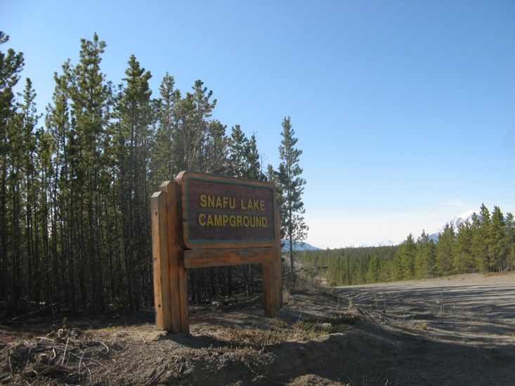 Our short visit to the Atlin area over we drove back towards the Alcan Highway and stopped for the night at the Snafu Lake campground. As you may know SNAFU is a military acronym for Situation Normal All F@!$%& Up. There is also a nearby lake called TARFU Lake.