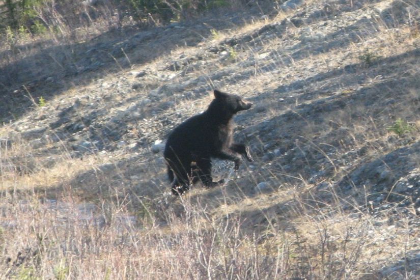 Early in the day we came across a family of black bears on the side of the road having breakfast on the rubbish thrown by careless motorists.