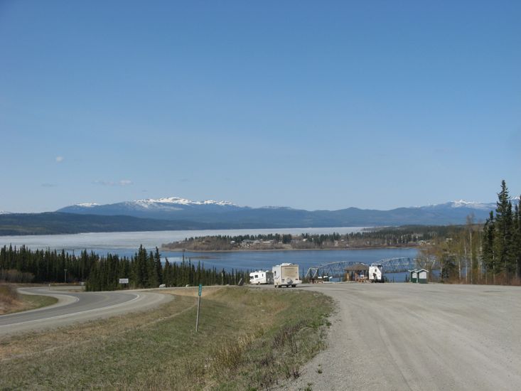 Tonight we have stopped just short of the town of Watson Lake, at a provincial campground on the shores of the Lake. There is slushy ice still covering most of the lake. This is another nice setting, with an abundance of free fire wood.